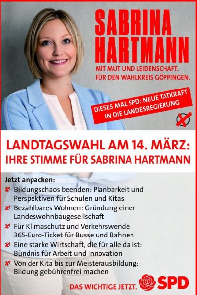 Unterstützung findet er bei Armin Roos, der als Ersatzkandidat für Sabrina Hartmann den Wahlkampf mitgestaltet. Als langjähriger SPD-Fraktionsvorsitzender im Stadtrat von Göppingen weiß er um die Herausforderungen einer erfolgreichen Kommunalpolitik und auch, wie wichtig es ist, ganz konkrete Schritte im Sinne der Bürgerschaft zu tun.