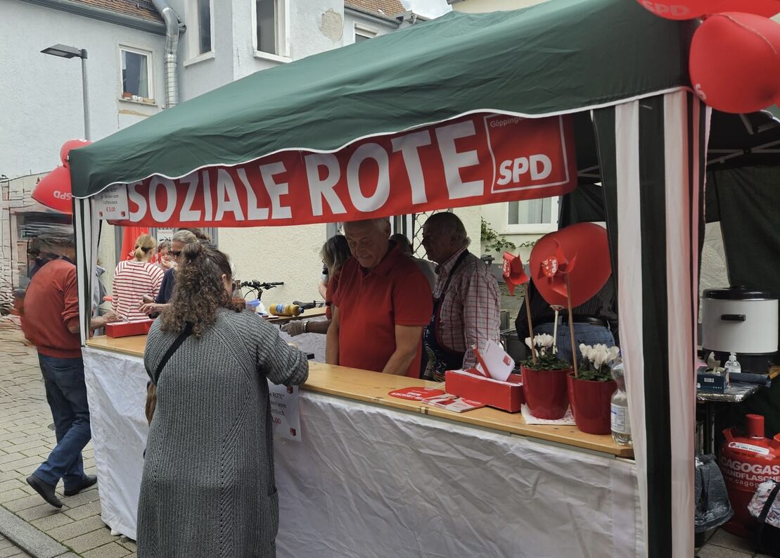 Die SPD Göppingen war auch in diesem Jahr wieder mit ihrer traditionellen sozialen Roten beim Stadttest vertreten – ein voller Erfolg! Schon am Sonntag um 16 Uhr waren alle Würste ausverkauft. Viele Bürgerinnen und Bürger nutzten die Gelegenheit, bei regionalen Spezialitäten ins Gespräch zu kommen.