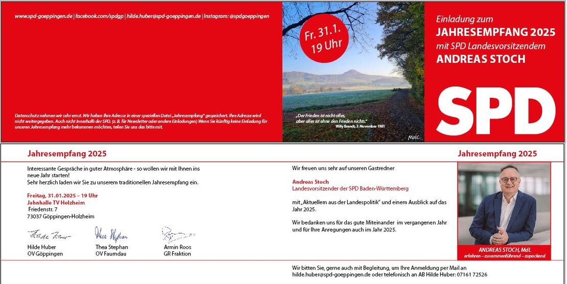 Die Ortsvereine Göppingen und Faurndau freuen sich auf zahlreiche Gäste aus der Göppinger Bürgerschaft,